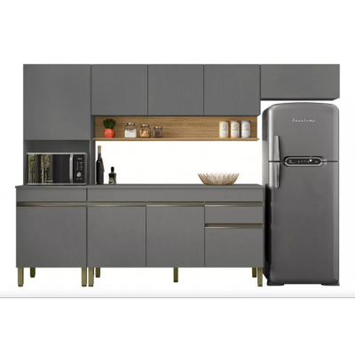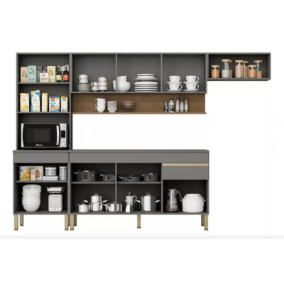 کیت های کامل آشپزخانه خط 9 درب 1 کشو Gris/Freijo-paraná در MDP در مقیاس نیمه براق و نیمه شکل تولید می شود و دارای درجه ای از مشکل نصب است: متوسط.