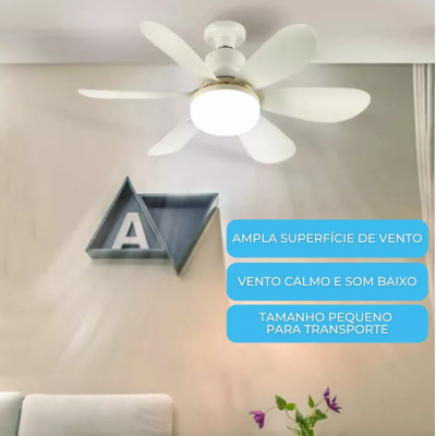 فن سقفی سفید با نور یکپارچه خاموش با کنترل از راه دور