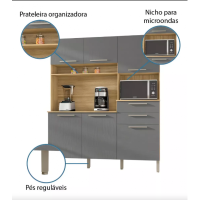 کابینت کامل آشپزخانه مونتسا 6 درب 2 کشوهای Freijó و Paraná Kit Graphite