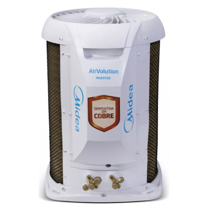 درlém da serpentina de cobre, material ultra resistente e de grande condutibilidade térmica, a unidade externa vem equipada GOLD FIN®, uma proteção extra contra corrosão.